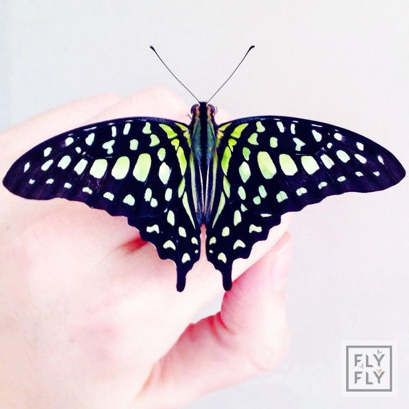 Размах крыльев до 6 см. На крыльях зелено-черная мозаика. Срок жизни до полутора недель.